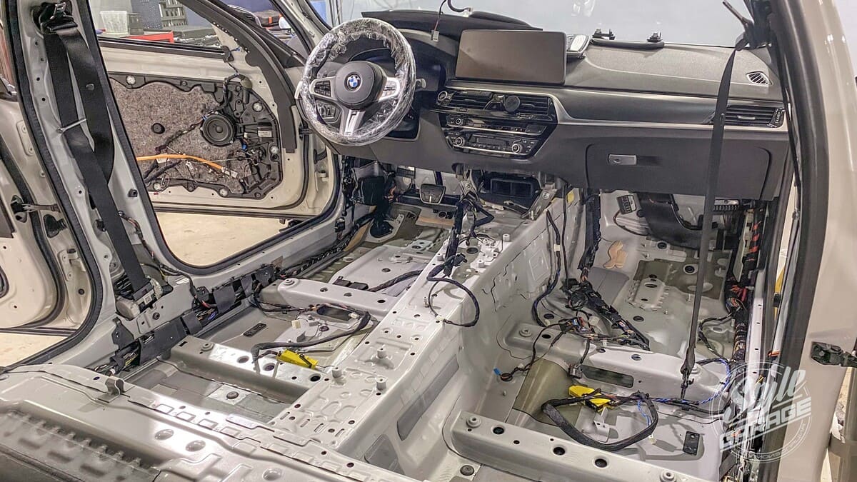- Дополнительные услуги при инсталляции автозвука — уплотнение шумоизоляции автодвери и иных элементов BMW 5 series.