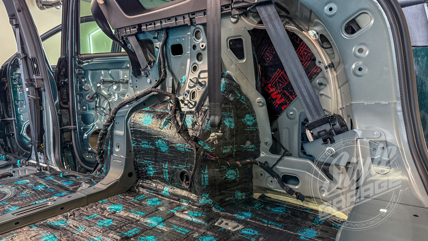 Полная шумоизоляция автомобиля Чери Тигго 9 в тюнинг ателье StyleGarage (Москва)